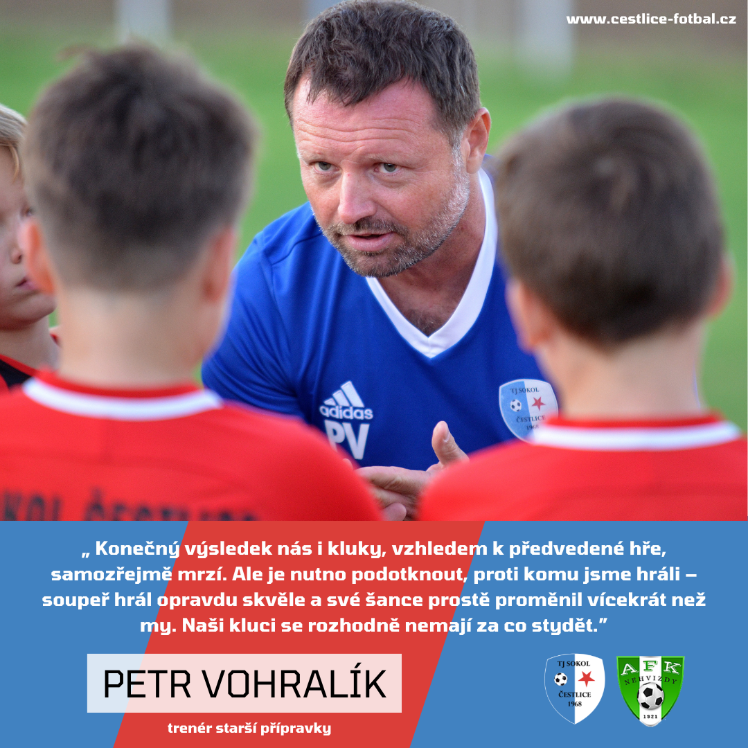 Poslední čtvrtinu domácí prohráli 0:1, což uzavřelo skóre na konečných 4:7. Přestože výsledek mrzí, výkon týmu snesl přísná měřítka. „Konečný výsledek nás i kluky, vzhledem k předvedené hře, samozřejmě mrzí. Ale je nutno podotknout, proti komu jsme hráli – soupeř hrál opravdu skvěle a své šance prostě proměnil vícekrát než my," uznal sportovně Vohralík. Na závěr nechyběla pochvala jak směrem k soupeři, tak k vlastním hráčům. „Nehvizdům gratulujeme k zaslouženému vítězství a zároveň jim děkujeme, že hrají fotbal a ne jen jakousi účelnou nakopávanou. Za sobotu se nemáme za co stydět a klukům patří velká pochvala. Takto si představujeme výkon hodný Čestlic," zdůraznil.
