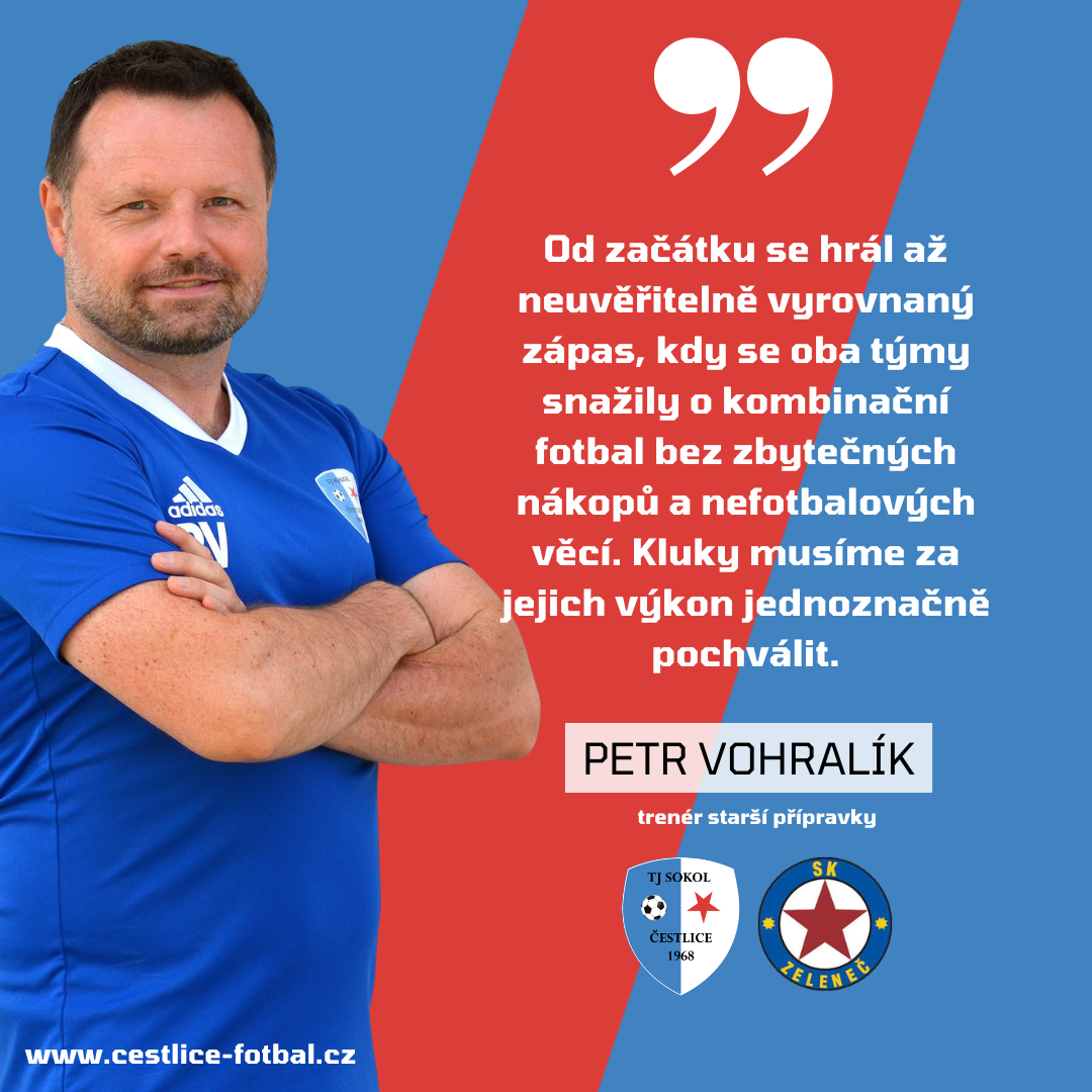 Celkově však tým podle trenéra podal výkon hluboko pod své možnosti. „Od brankáře po útok jsme zahráli hluboko pod naše možnosti a pokud se budeme takto prezentovat, budeme na jaře za otloukánky, kam soupeři budou s radostí jezdit pro body. Toto nebude stačit na nikoho," uvědomuje si kouč čestlických fotbalistů do jedenácti let.
